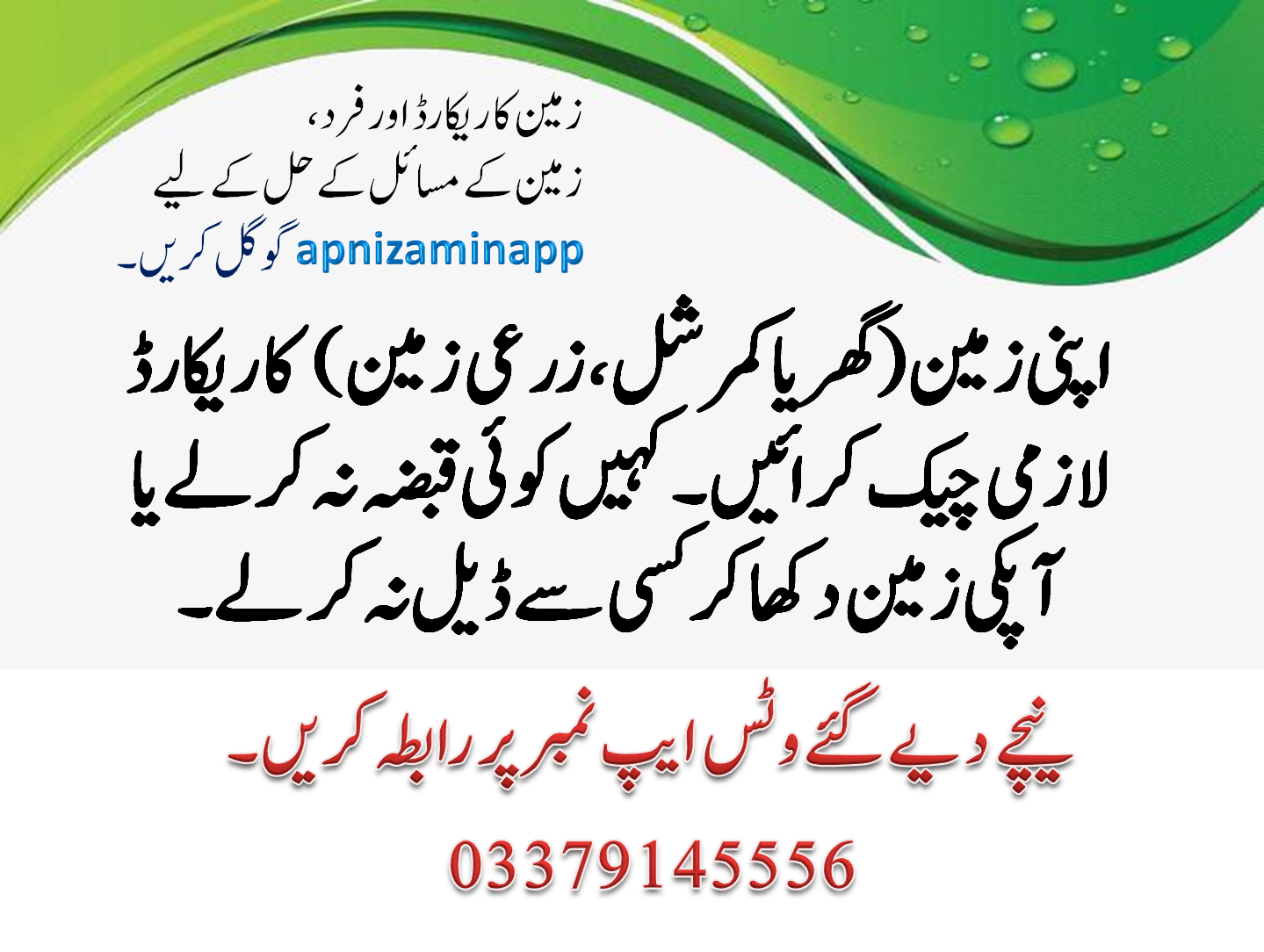 اپنی زمین (گھر یا کمرشل، زرعی زمین) کا ریکارڈ لازمی چیک کرائیں۔ کہیں کوئی قبضہ نہ کر لے یا آپکی زمین دکھا کر کسی سے ڈیل نہ کر لے۔